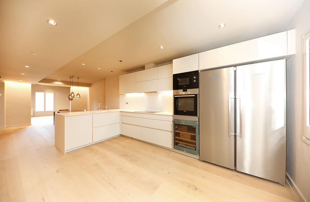 La cocina equipada con materiales de alta calidad igual que toda la vivienda. La cocina dispone de espacio para buen comedor.